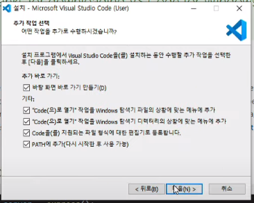 설치파일 실행 후 아래 단계에서만 모든 체크박스 선택, 나머지는 계속 Next 클릭한다.