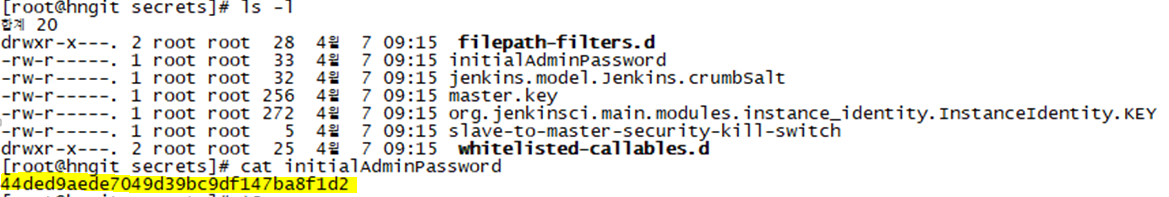 Linux 서버에 접속해 아래 명령어를 입력, Password를 확인한다.