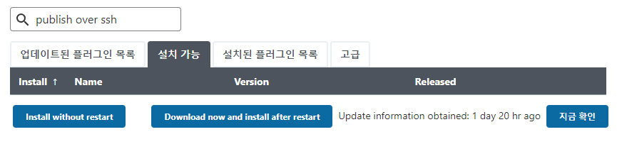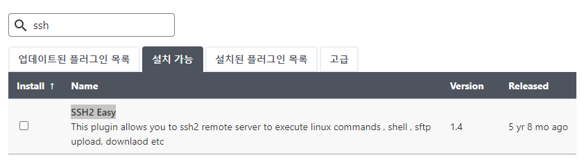 급한 대로 유사한 기능의 SSH 접속 플러그인을 사용해 보려고 검색해 봤을 때 나오는 플러그인이 있기는 했다.