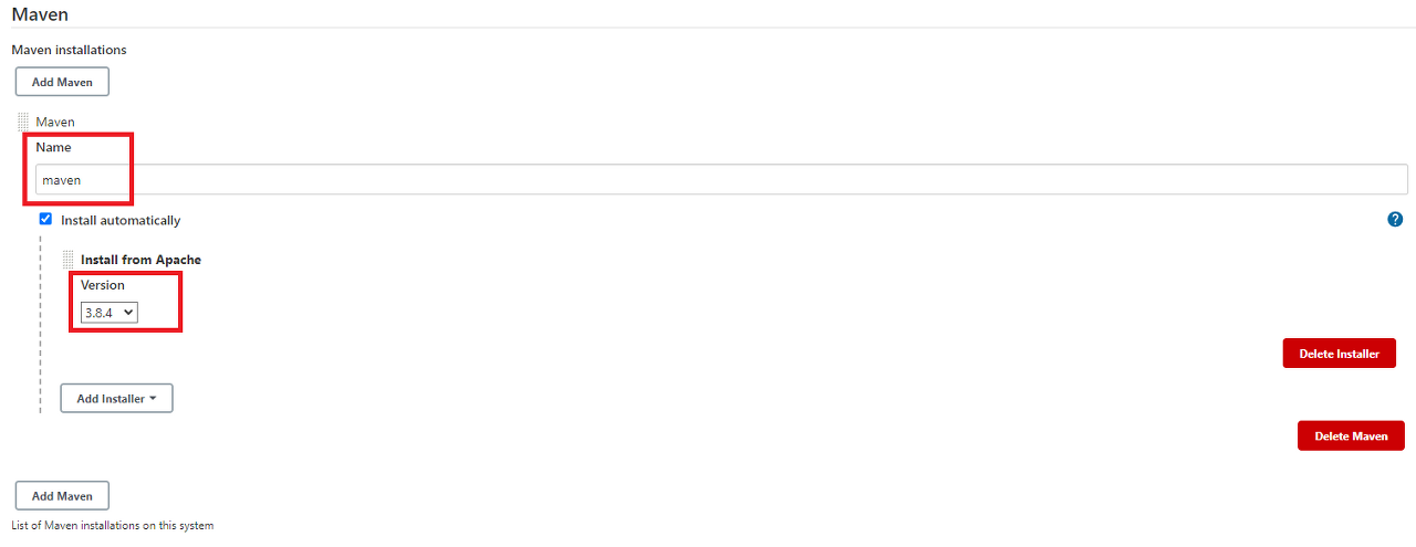 메뉴: Jenkins 관리 > Global Tool Configuration > Maven > Maven installations