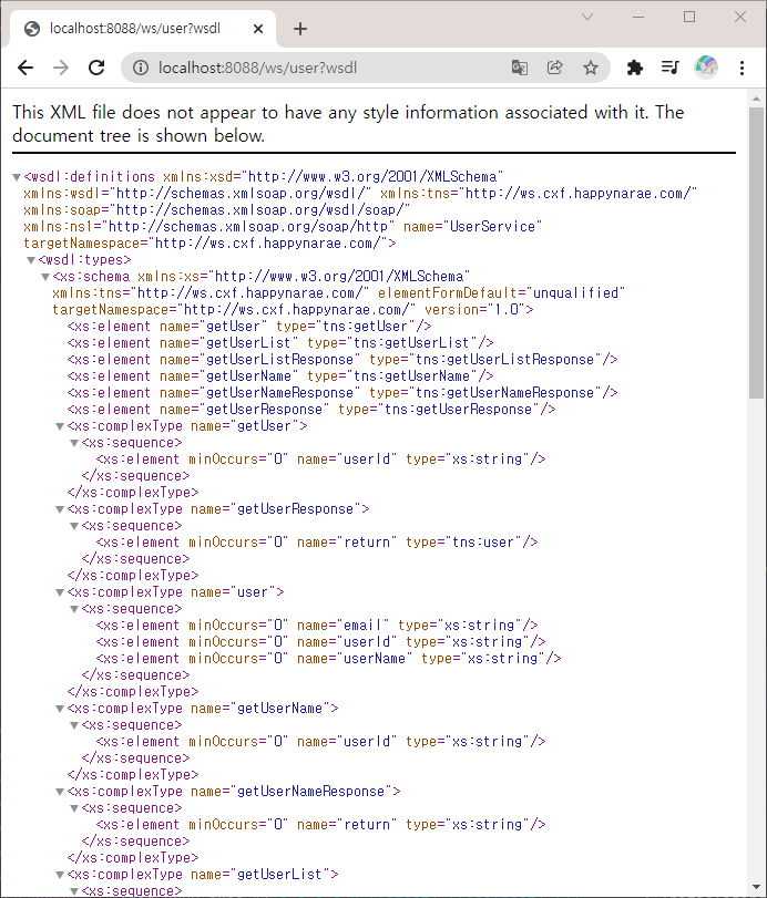 http://localhost:8080/ws/user?wsdl 으로 접근한다.